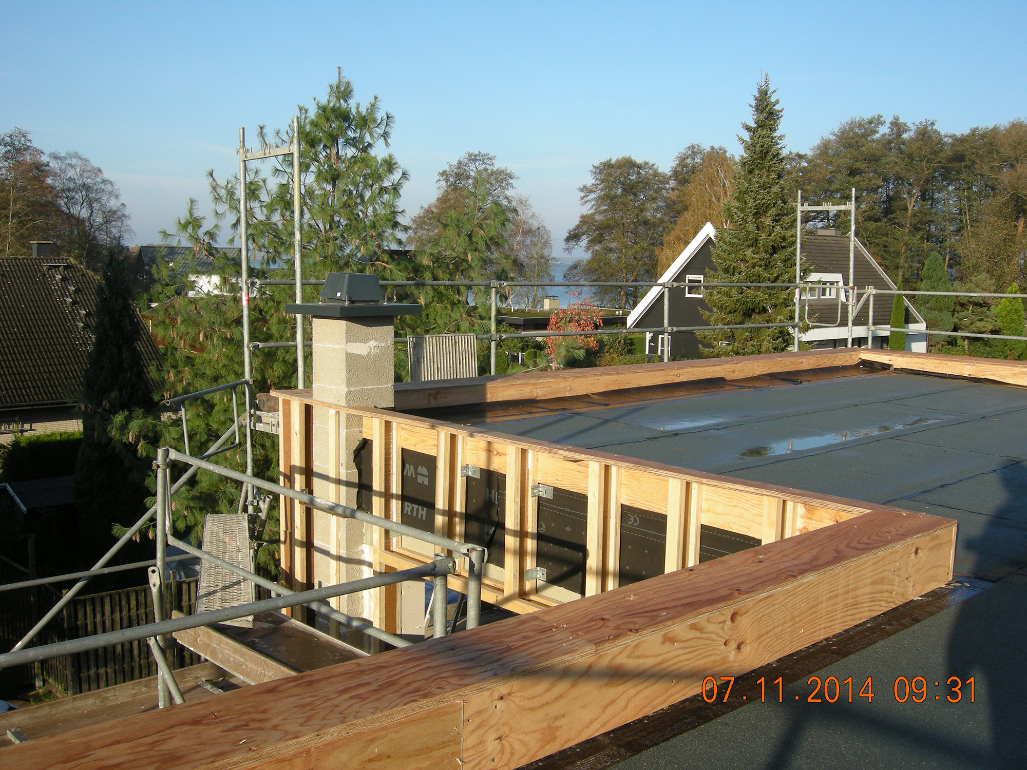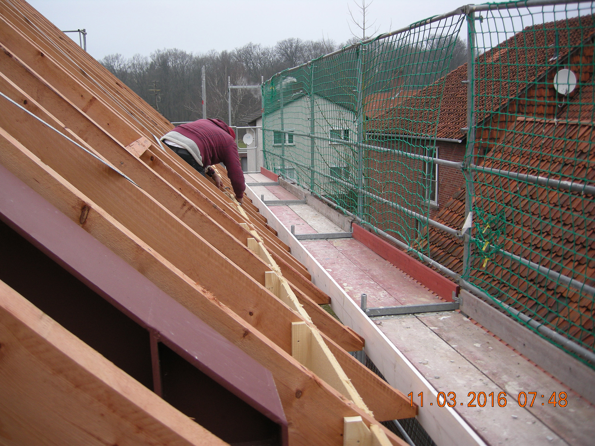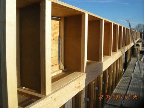 Holzfaserplatte mit Unterdeckbahn auf Holzrahmenbau mit Zellulose verfüllt und Thermoholzleisten Büro Dipl.-Ing. Jörn Knop (2014)