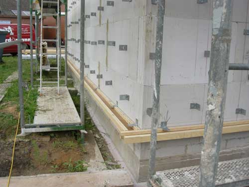 Fassade mit Stegträger auf Kalksandstein Rohbau mit Zellulose und Holzfaserputzträgerplatte mit mineralischem Putz Büro Dipl.-Ing. Jörn Knop (2013)
