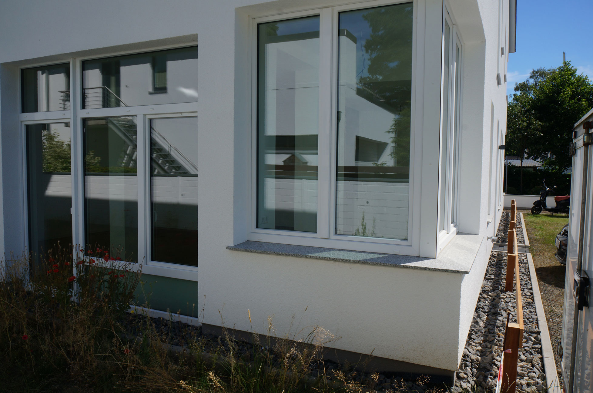 Fassade mit Stegträger auf Kalksandstein Rohbau mitZellulose und Holzfaserputzträgerplatte mit mineralischem Putz Büro Dipl.-Ing. Jörn Knop (2013)