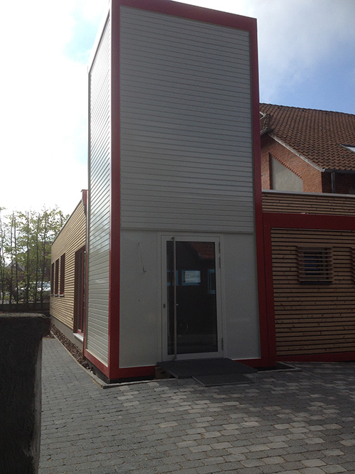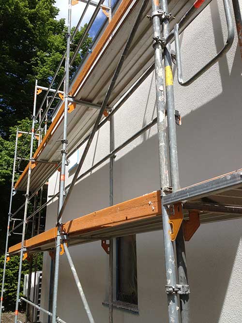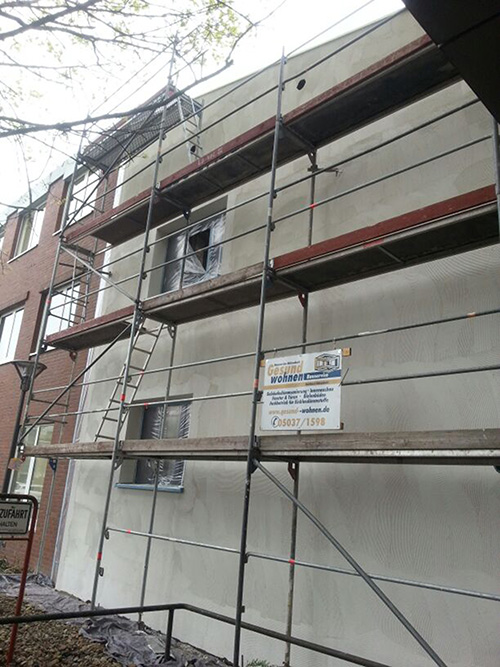 Fassade mit Stegträger auf Altbausteinwänden verputzt mit Zellulose und Holzfaserputzträgerplatten mit mineralischem Putz Büro Dipl.-Ing Michael Lappe (2013)