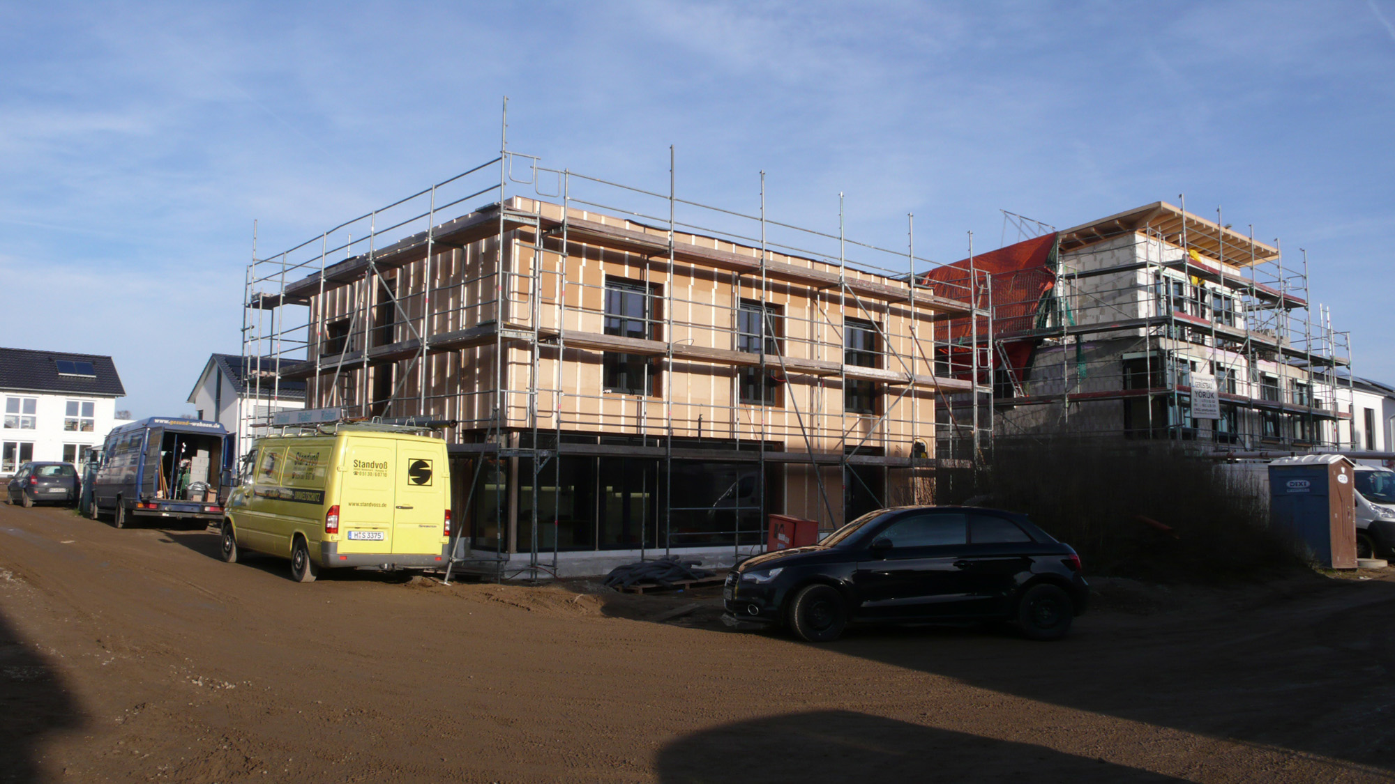 Fassade mit Stegträger auf Kalksandstein Rohbau mit Zellulose und Holzfaserputzträgerplatte mit mineralischem Putz Büro Dipl.-Ing. Stefan Busse (2016)